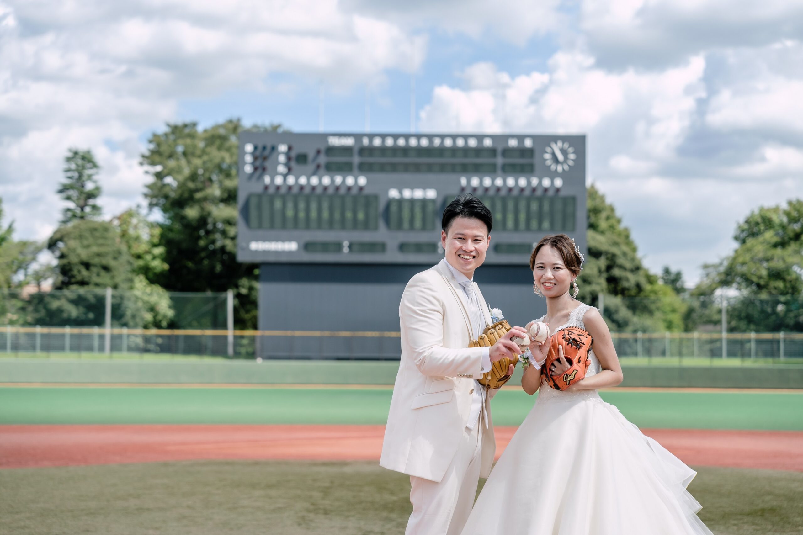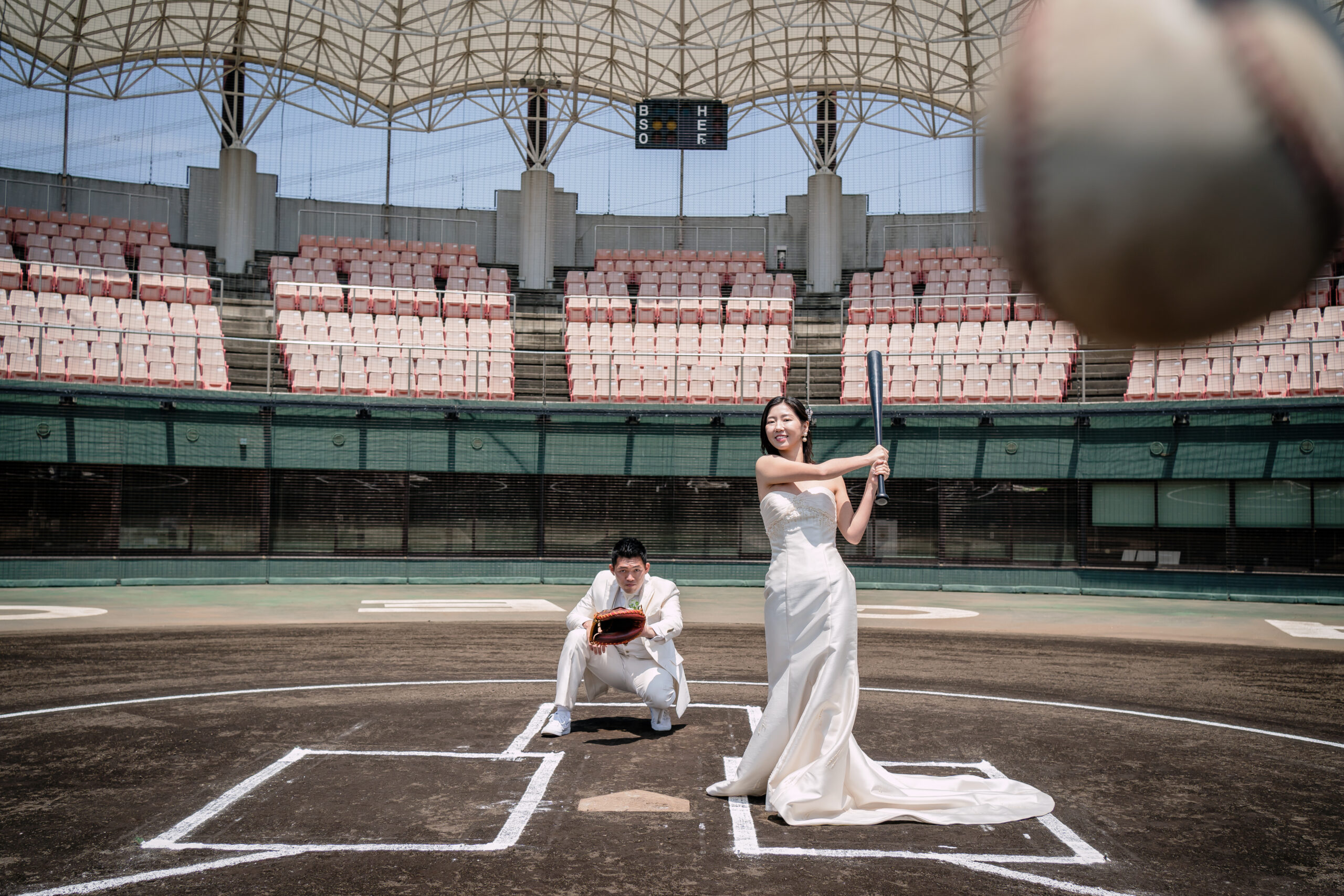 野球場での前撮り・フォトウェディングをご希望のお客様はお気軽にお問い合わせください^^